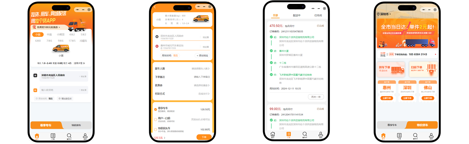 涵盖了物流项目、拼车订单、计划订单及配送订单的全面管理,确保运营流程的顺畅与高效。